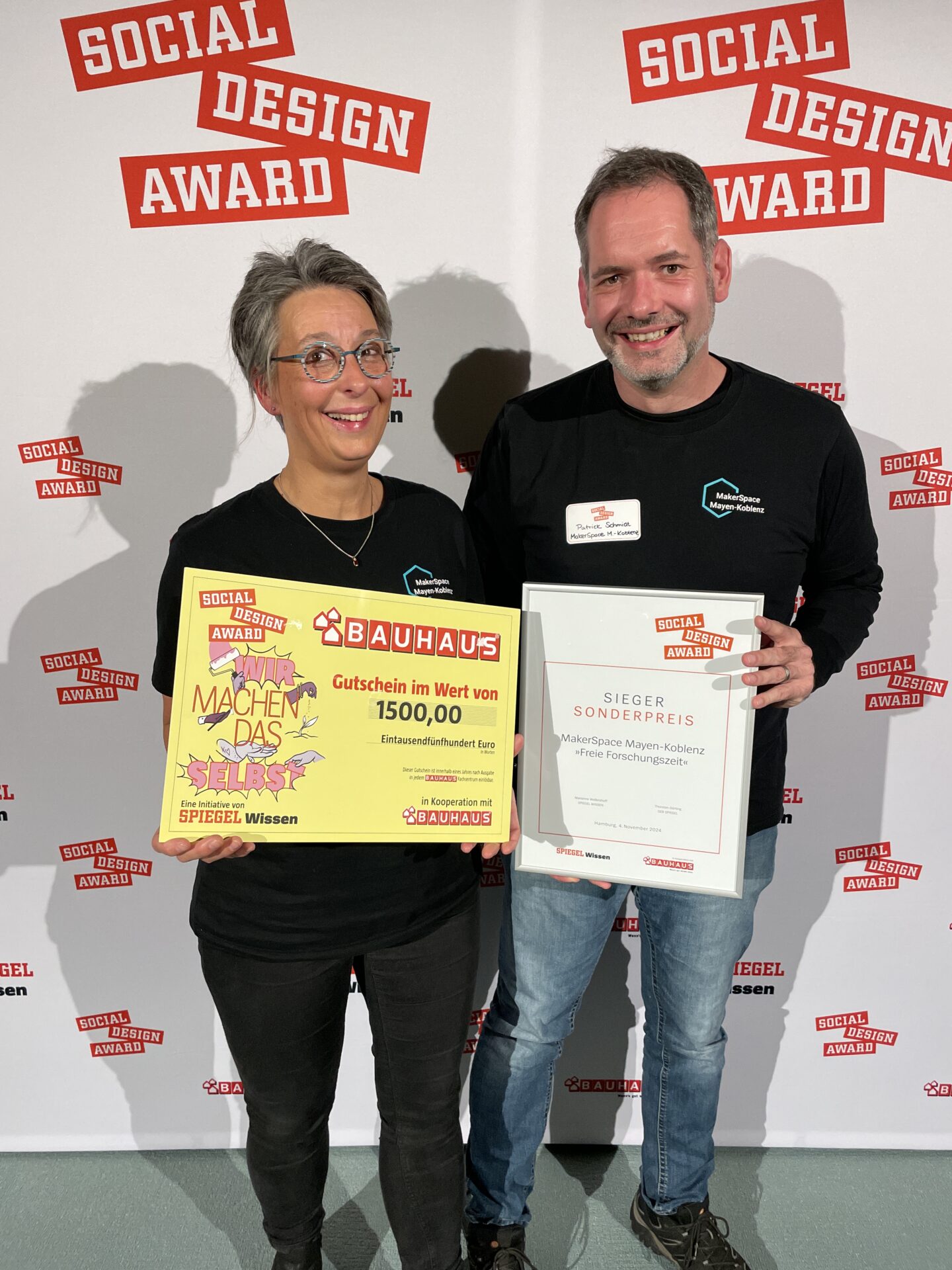 Zuerst waren sie nur nominiert und sind voller Erwartungen zur Preisverleihung nach Hamburg gefahren. Heute kommt das Team des MakerSpace Mayen-Koblenz mit dem Sonderpreis nach Hause.