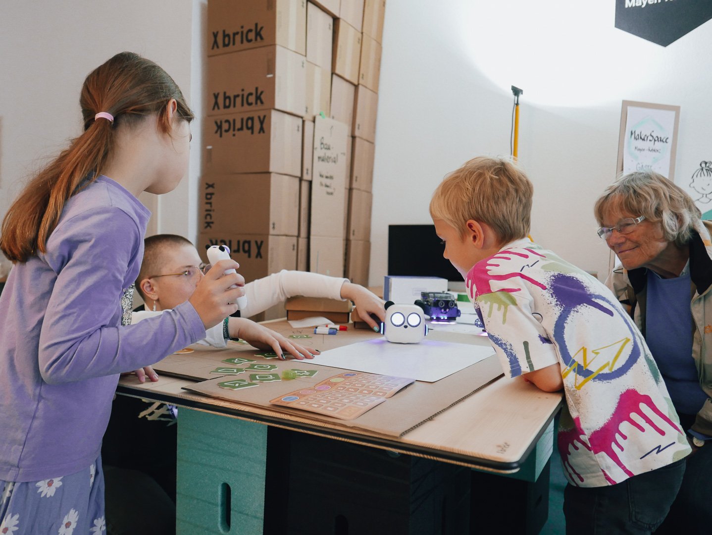 Wir legen in unserer Arbeit hohen Wert auf Indi­vi­dua­lität und stellen Struk­turen zur Verfü­gung, in denen sich alle stär­ken­ori­en­tiert, alters­un­ab­hängig und sprach­frei bewegen können. So bauen wir Berüh­rungs­ängste und Barrieren ab. Im Maker­Space arbeiten wir expe­ri­men­tell, insbe­son­dere im Bereich Mathe­matik, Natur­wis­sen­schaft und Technik.