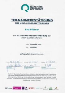 Die Fokus­sie­rung auf den MINT-Bereich erfolgt auch unter zukunfts­ori­en­tierten Gesichts­punkten, da wir junge Menschen für eine nach­hal­tige, digi­tale Zukunft vorbe­reiten und dabei bei Bedarf auch vorge­ge­bene Pfade verlassen.